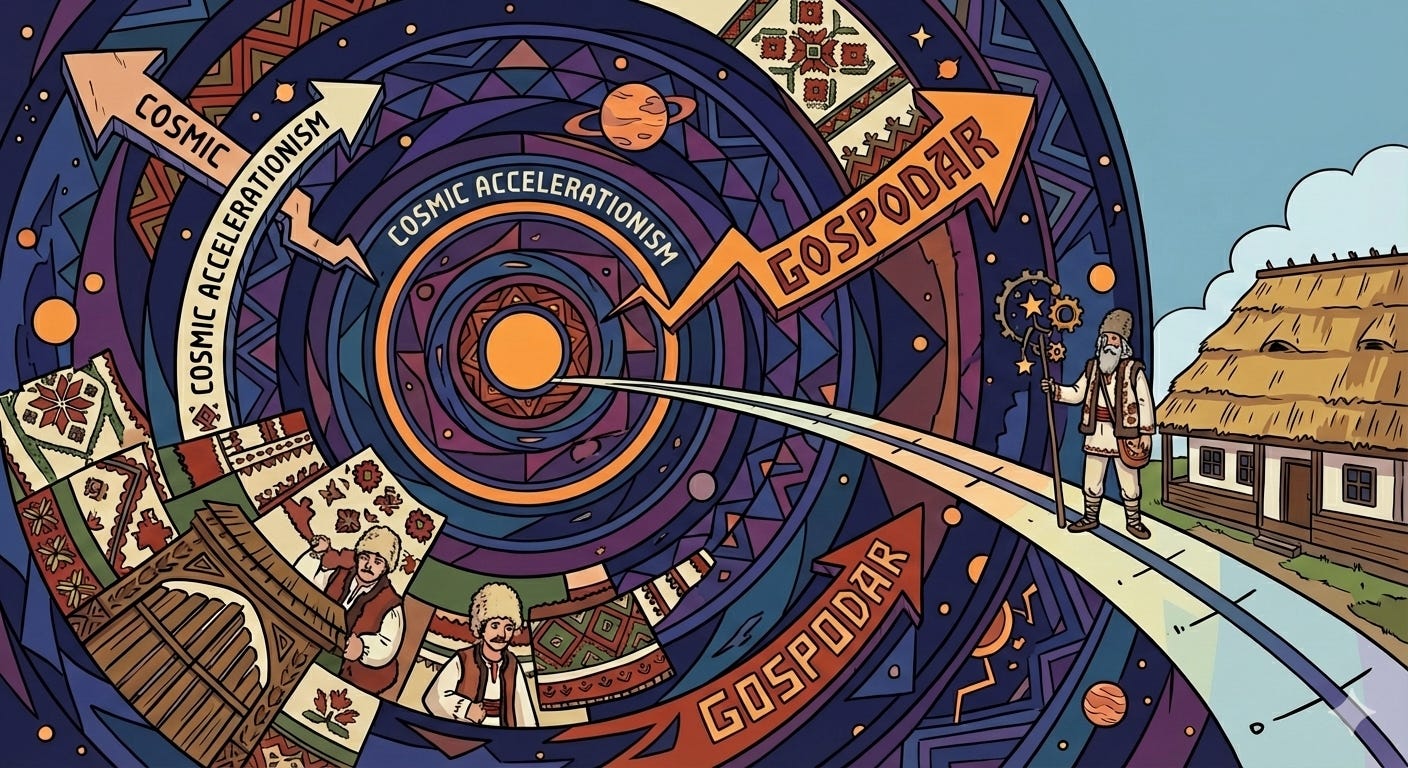 Sau, în alte cuvine, abilitatea de a merge, conștiincios și diligent, pe drumul îngust de mijloc dintre, pe de parte stagnare și retrogradism, și pe de alta acceleraționism naiv/agresiv (”unchecked growth mindset”). De a ține piept ambelor tentații, dar nu doar ca un “viteaz” curajos, care poate câștigă bătăliile, dar e prea epuizat după să mai facă ceva... ci ca un “adevărat gospodar” care continuă lupta, munca, curățenia... ascensiunea?